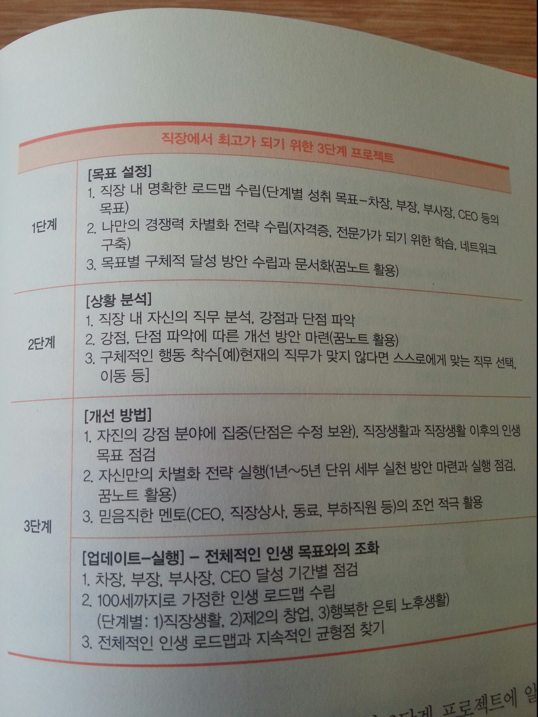 직장 내 명확한 로드맵 수립(단계별 성취 목표-차장, 부장, 부사장, CEO 등의 목표)