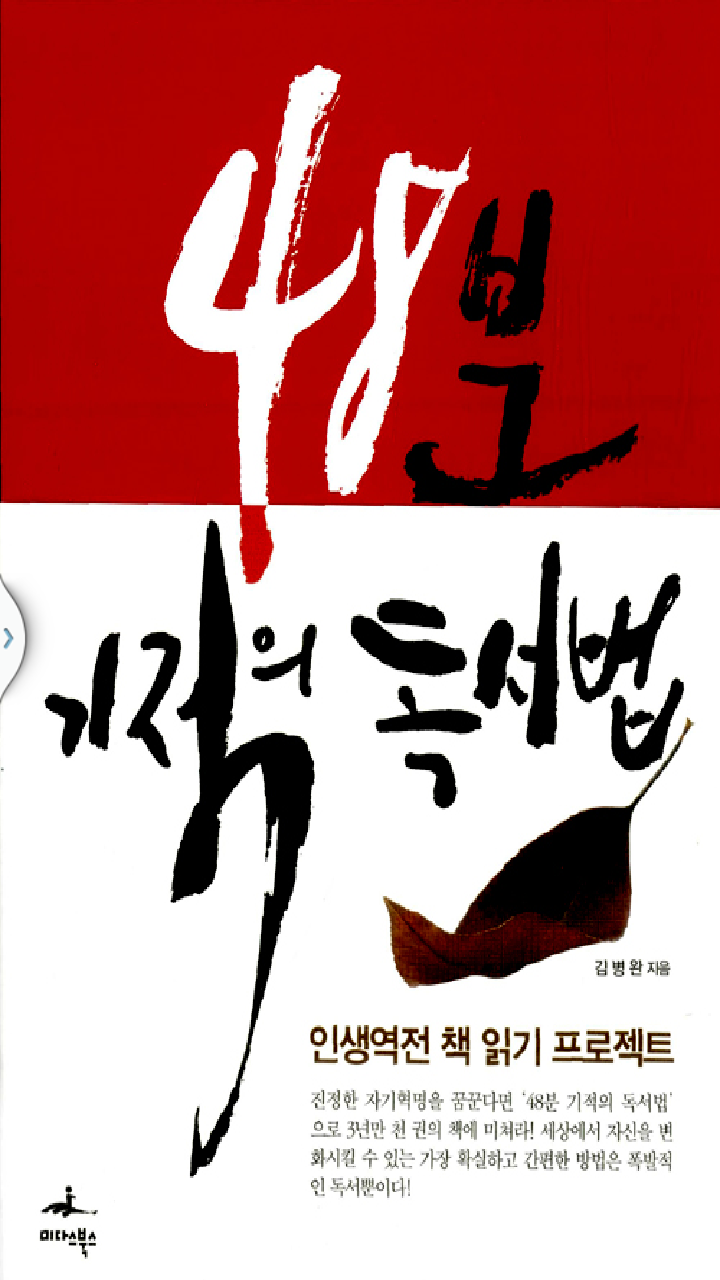 자신과는 다른 삶을 살았던 이들의 책을 읽다보면 어느새 수많은 사람들의 삶을 살았던 이들의 책을 읽다보면 어느새 수많은 사람들의 삶을 이해하게 될 것이고 생각이 확장되는 것을 스스로 느낄 것이다. 이것이 바로 기적의 독서법이다. 책 읽기를 통해 인생역전을 이루고 싶다면 명작도 읽고, 베스트셀러도 읽고, 전문서도 읽고, 만화책도 읽어라. 다양한 독서의 경험과 몰입을 통해 독서의 기술과 방법을 터득해야 한다.
