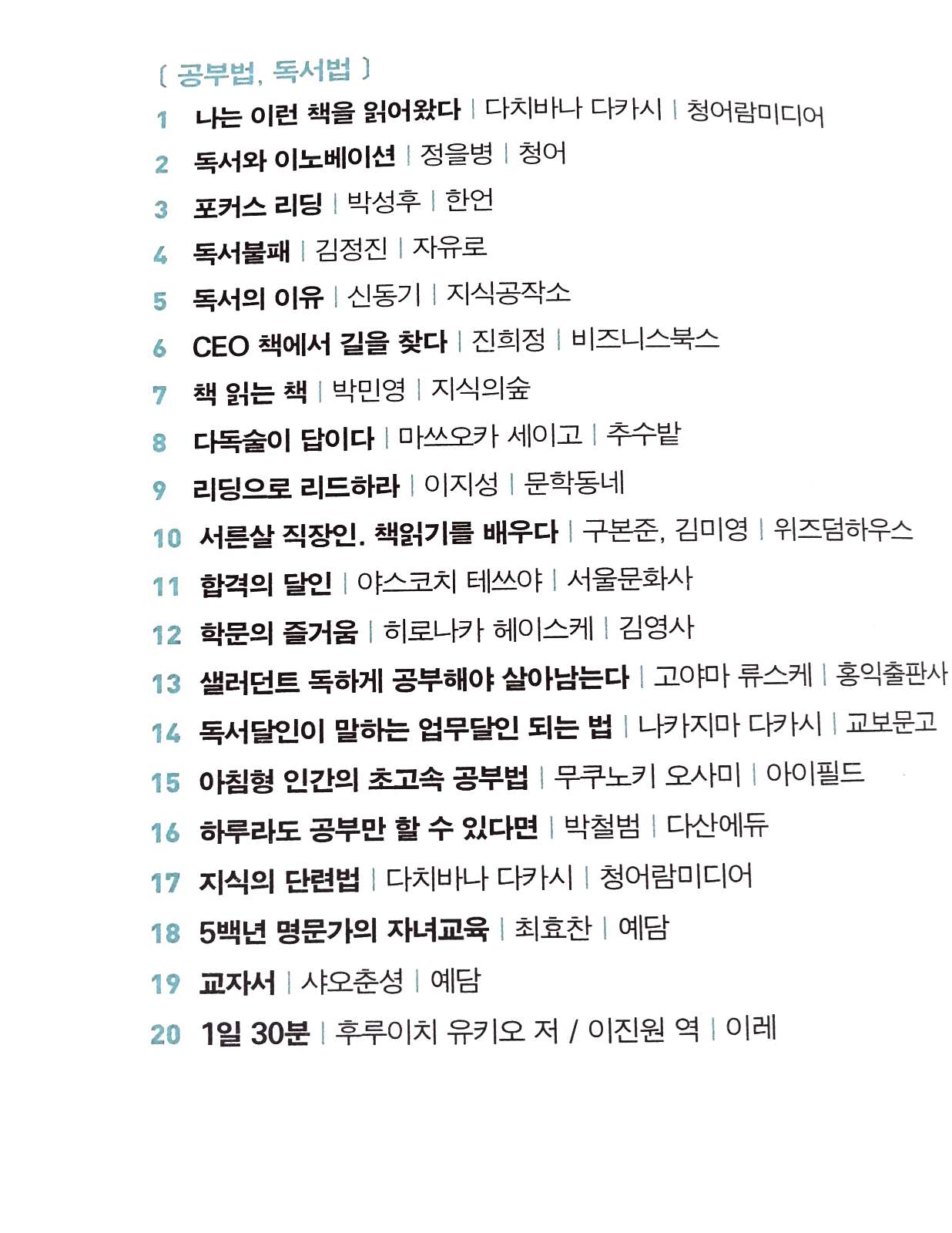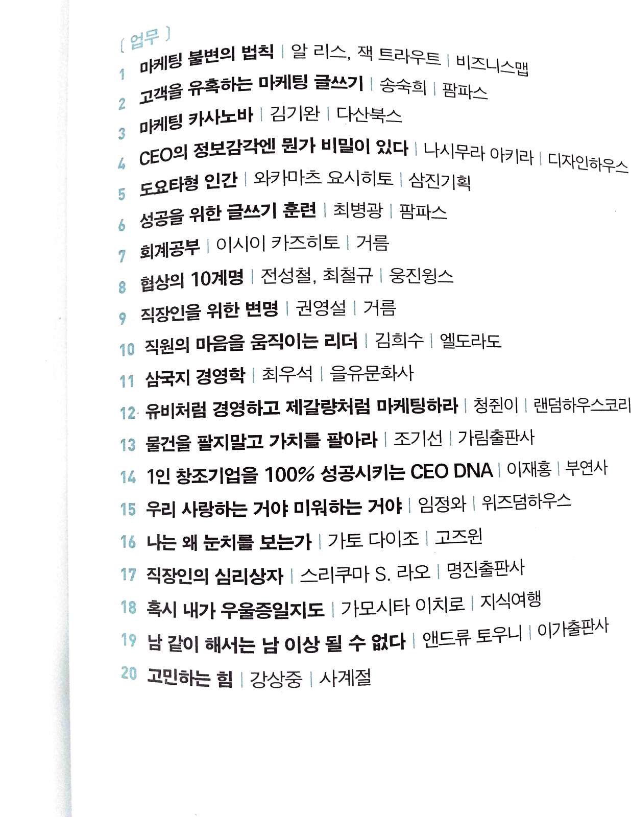 1. 업무 분야의 고전으로 꼽히는 책을 한 달마다 10권씩 산다.
