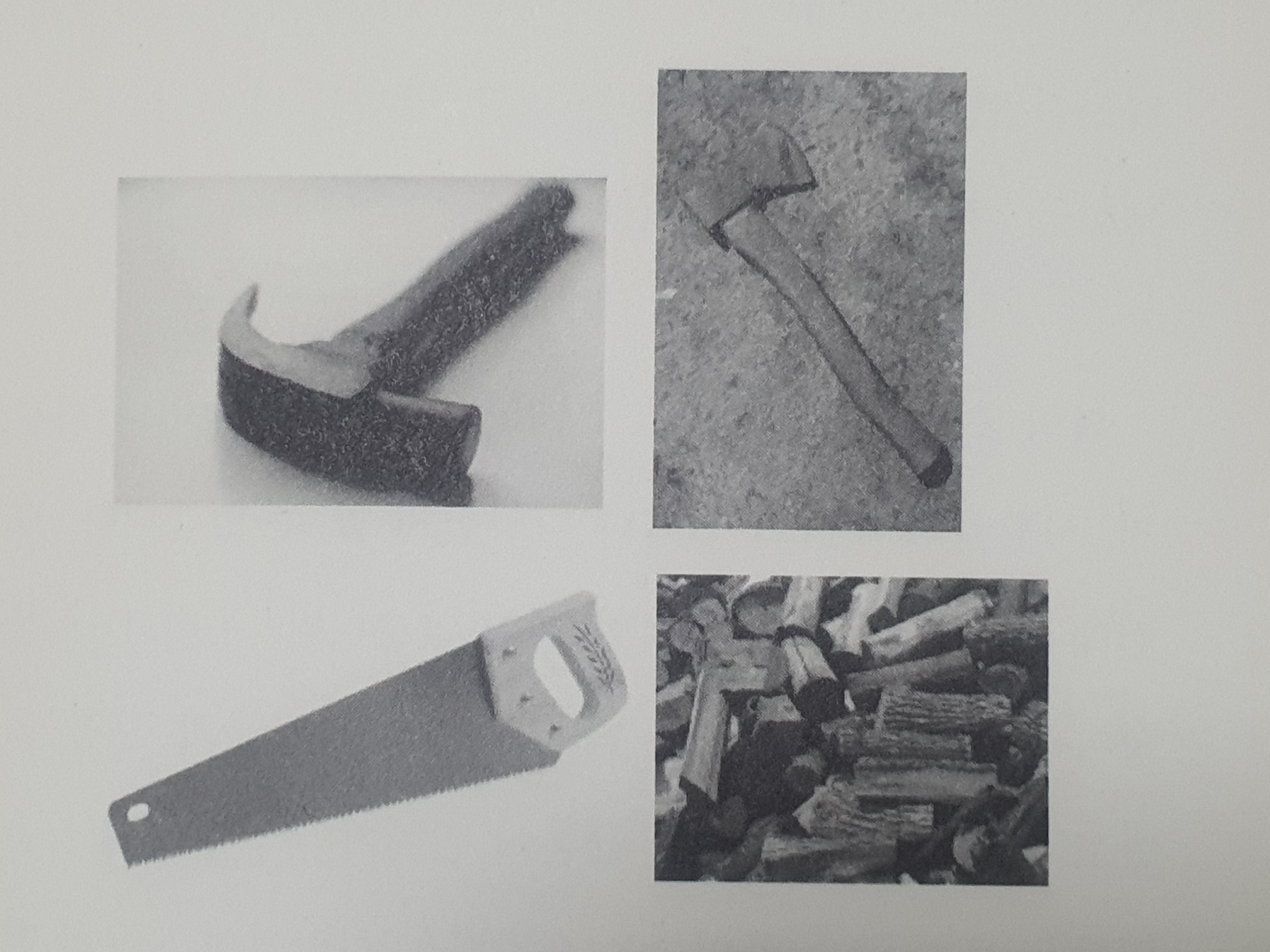 자 하나 더볼게요. 도끼, 망치, 톱, 나무가 있습니다. 이중에서 한 개를 빼야 한다면 뭘 빼시겠습니까?