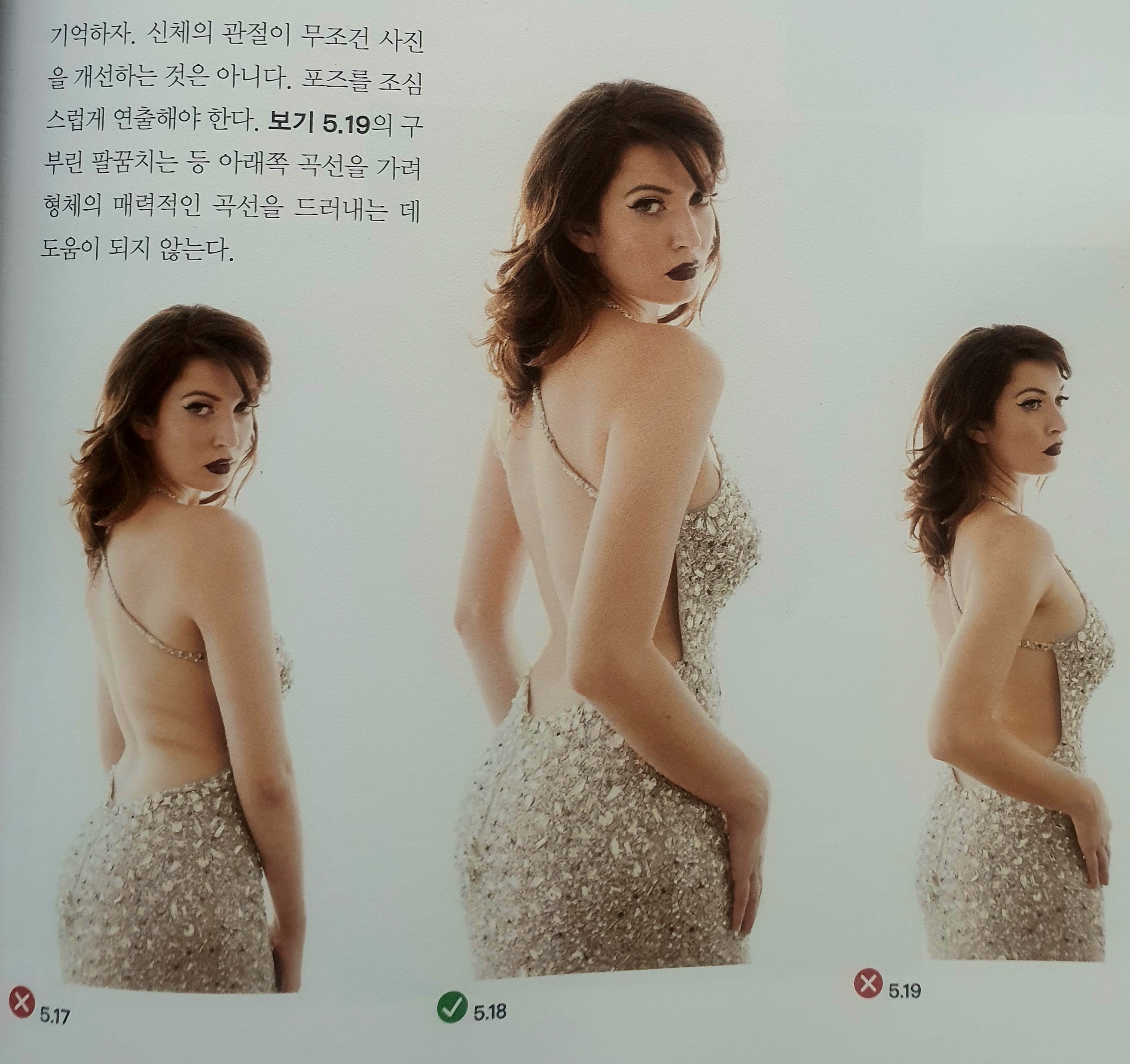 5.19 구부린 팔꿈치는 등 아래쪽 곡선을 가려 형체의 매력적인 곡선을 드러내는 데 도움이 되지 않는다.