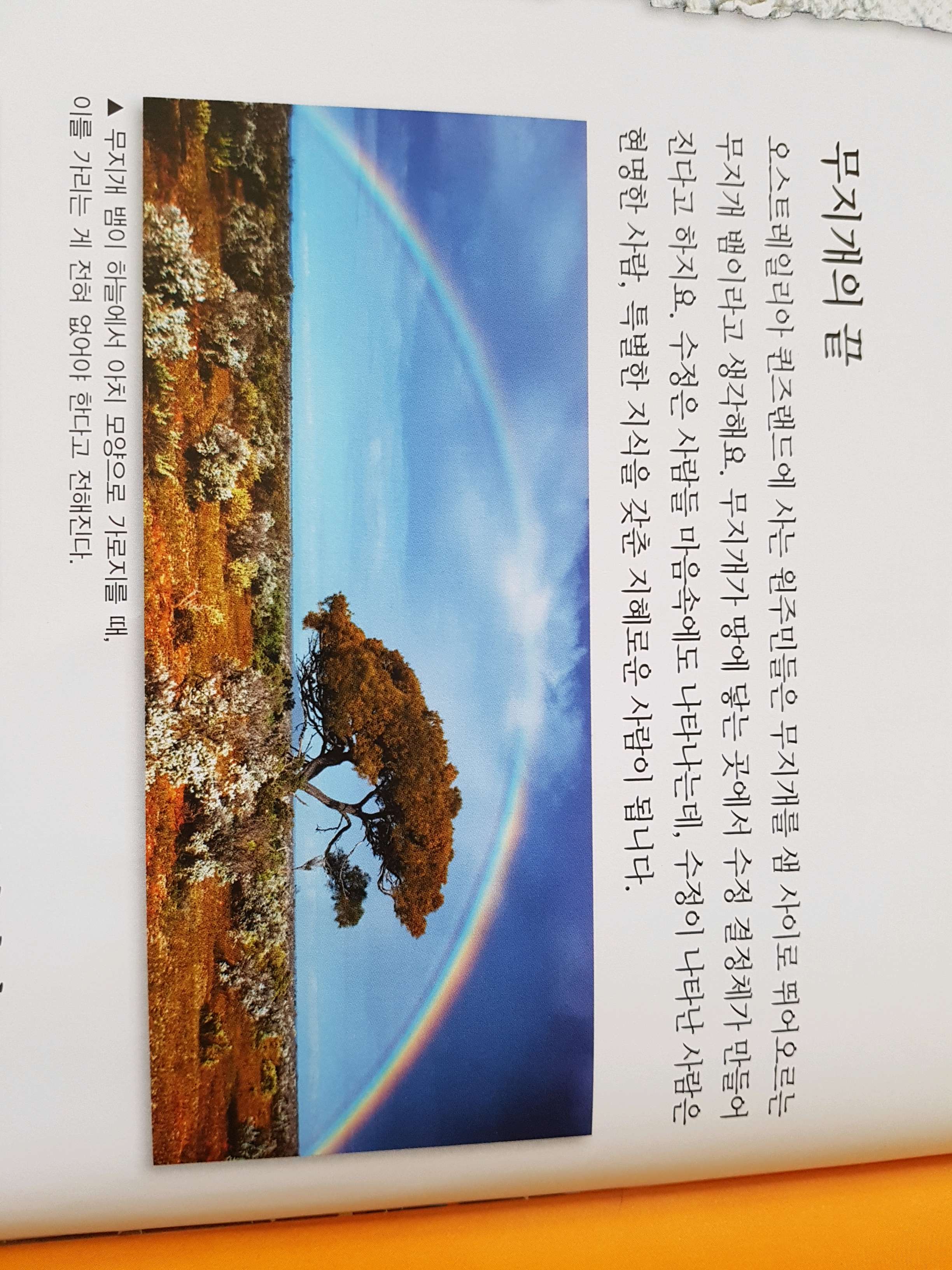 오스트레일리아 퀸즈랜드에 사는 원주민들은 무지개를 샘 사이로 뻗어오르는 무지개뱀이라고 생각해요.