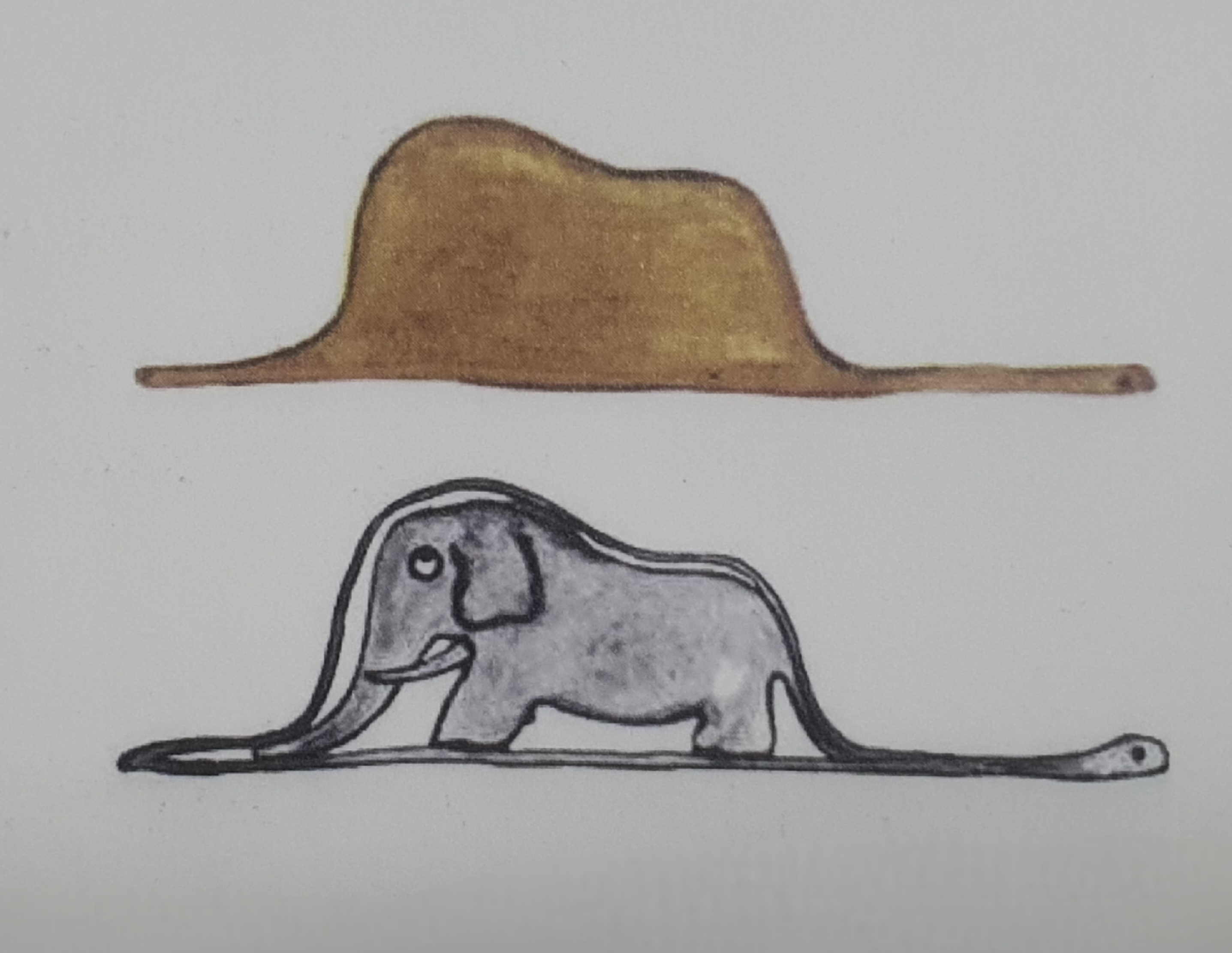 197 어느 날 생텍쥐페리는 거의 모든 사람들이 이 그림을 보고, "이거, 코끼리를 삼킨 보아뱀이잖아"라고 말하는 걸 보며 굉장히 슬펐다고 한다. 보아뱀은 그저 상상을 열어갈 빈칸을 가리키는 손가락일 뿐인데, 사람들은 그 손가락만 이야기하니까.