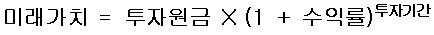 미래가치 = 투자원금 X ( 1 + 수익률)^투자기간(승수)
