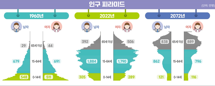 인구피라미드 출처 : 통계청(2023) P90