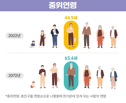 통계청에서는 2072년 한국 사회의 평균 연령이 58.6세가 될 것이라 보고 있다.