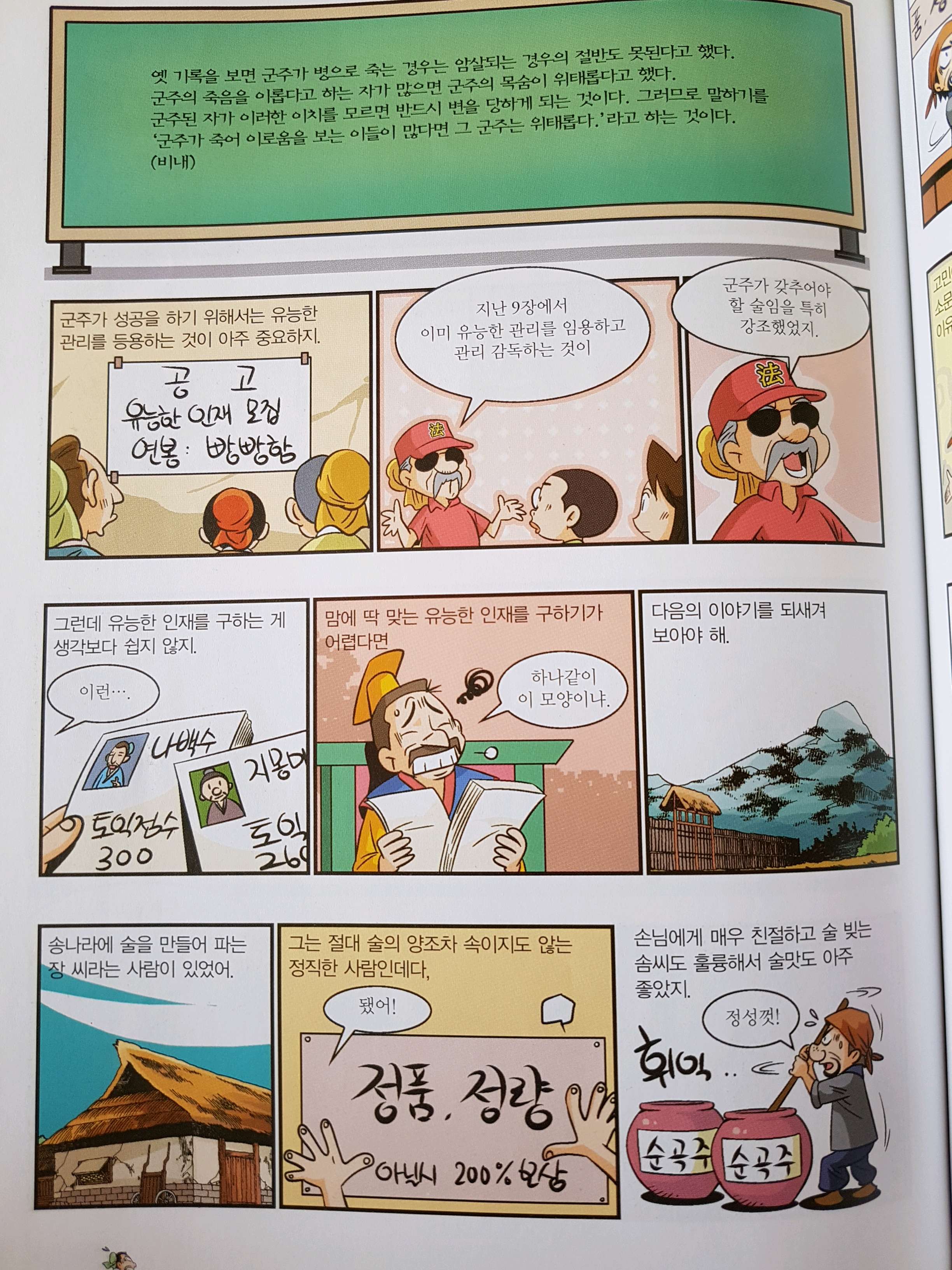 나아가 군주가 자신의 재능을 발휘하여 일을 하고자 할 때에는, 곁에서 군주가 알아차리지 못하도록 은밀히 간접적으로 도와줘서 일을 성취되도록 해야 하며, 자신의 도움으로 성취했을 때라도 자기가 한 행위를 자랑하지 말고 시치미를 떼어 군주의 재능으로 일이 성취된 것처럼 군주를 모셔야 해. 잘못 떠벌이다가 도리어 군주의 노여움을 사는 일도 흔하지.
